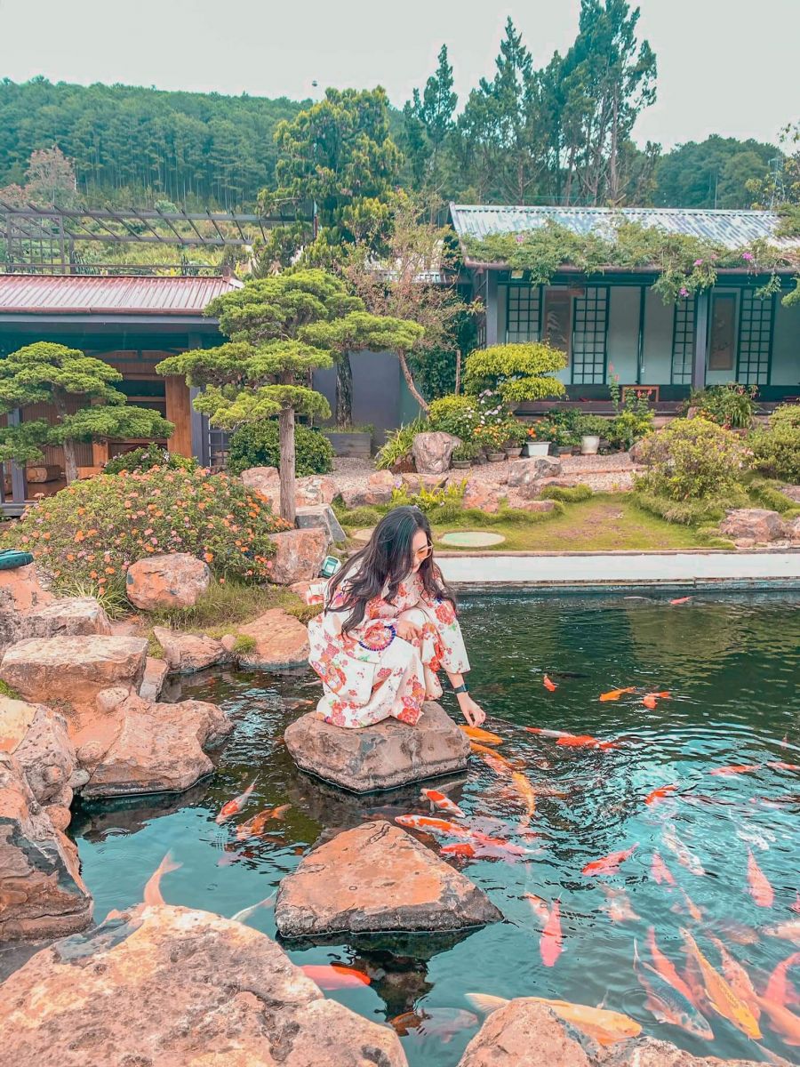 Buổi chiều quý khách tham quan QUE GARDEN – Tiểu Nhật Bản giữa lòng cao nguyên Lâm Viên, với cụm tiểu cảnh: Hồ cá koi, cây cầu đỏ, nấc thang lên thiên đường, cây hoa giấy khổng lồ, vườn bosai lá kim lớn nhất Đà Lạt, ngôi nhà theo phong cách nhật bản, vườn hoa bảy màu, tượng lạc long quân và âu cơ khổng lồ.