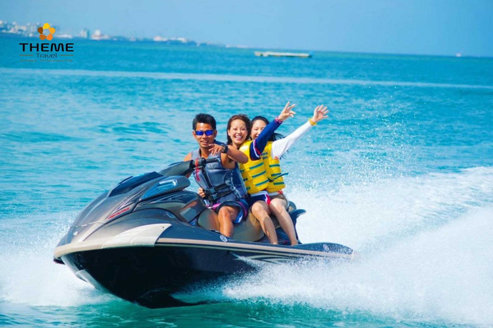 Buổi chiều đoàn tự do tắm biển, nghỉ dưỡng, thư giãn hoặc tham gia các trò chơi thể thao biển, tận hưởng cảm giác mạnh với các trò chơi như: lái Mô tô trượt nước (Jetsky), lái mô tô nước cao tốc, ca nô kéo dù bay ngắm toàn cảnh khu du lịch từ trên cao hay nằm phơi mình trên những chiếc ghế dài, thưởng thức ly cà phê và lắng nghe tiếng sóng biển vỗ rì rào bên tai.